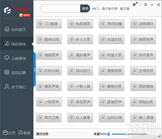 野狼F8音效王是一款语音聊天,网页主播、MC喊麦,游戏指挥必备的软件。他可以模拟N多特别声音,其中分别有群众笑声,尖叫声,掌声,婴儿笑声,狗叫声,打呼噜,打喷嚏,乌鸦飞锣鼓敲响,军鼓滚奏等几十种内置音效,同时拥有云端海量音效提供下载。支持多通道音频播放,自定义随意音效分组,由于界面友好,操作方便,深受9158,呱呱,YY UC,聊聊等广大聊友的支持青睐!是一款语音聊天室必不可少的辅助软件。