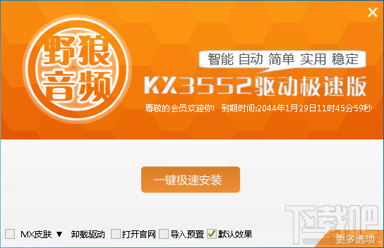 野狼KX3552驱动极速版是一款声卡驱动。原官方版本留下了很多缺陷,如64位系统下插件不全,容易崩溃,调音台预置数据不可保存不可切换,安装步骤烦琐,需要分几步安装,各系统之间的连线图,不可通用等等!这些问题,在3552极速版中,已得到作者全部修复和改进;一步安装到位,无需重启电脑,同时一个驱动可以兼容XP、Win7、Win8 Win10等32位和64位系统,自带5.1和7.1全套预置效果,任何系统都可以支持HQ通道输出,各系统之间的效果图,支持完美套用!超过以往所有的KX驱动版本,非常稳定,永不崩溃。