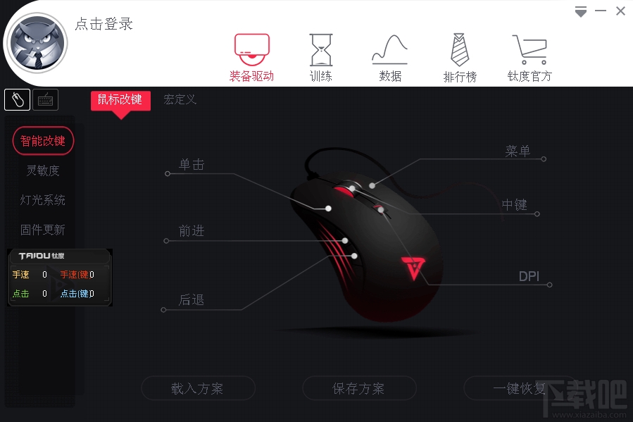 钛度电竞精灵是钛度官方针对旗下键盘与鼠标产品而进行研发的驱动软件。钛度电竞精灵具有智能改键、灵敏度调节、灯光系统、自定义宏命令等等功能,全面释放游戏鼠标与键盘的所有性能,是专业游戏玩家必备的鼠标键盘调试软件。钛度电竞精灵以悬浮窗的形式帮助玩家记录游戏中爆发、手速、心率和点击,当游戏结束时,还会给出一个平均的数据,并记录下来,帮助玩家不断提高电竞水平。软件还会对鼠标的灯光进行调节,非常的绚丽。
