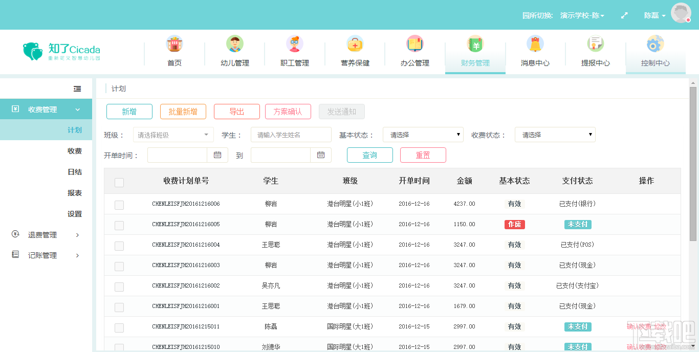 知了是中国领先的幼儿园一体化管理平台,致力于提升幼儿园信息化水平,为幼儿园提供基础园务、营养保健、财务管理、教学管理、师资培训、校园安全、家园共育及幼儿健康等专业服务,目前已经有超过5000所幼儿园使用,被用户誉为幼儿园管理必备软件。