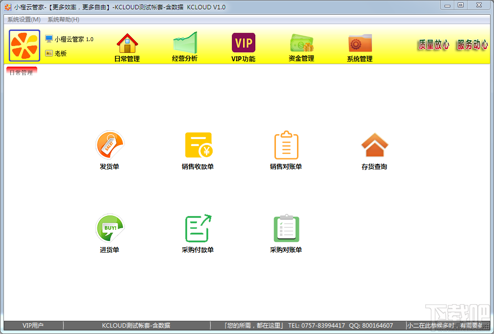 小橙云管家是一款基于云应用的通用效率型信息化管理软件, 主要的功能有中小微型企业、商铺、个体户管理物流、资金流, 管销售、管进货、管库存、管账款、管订货、管会员等等。