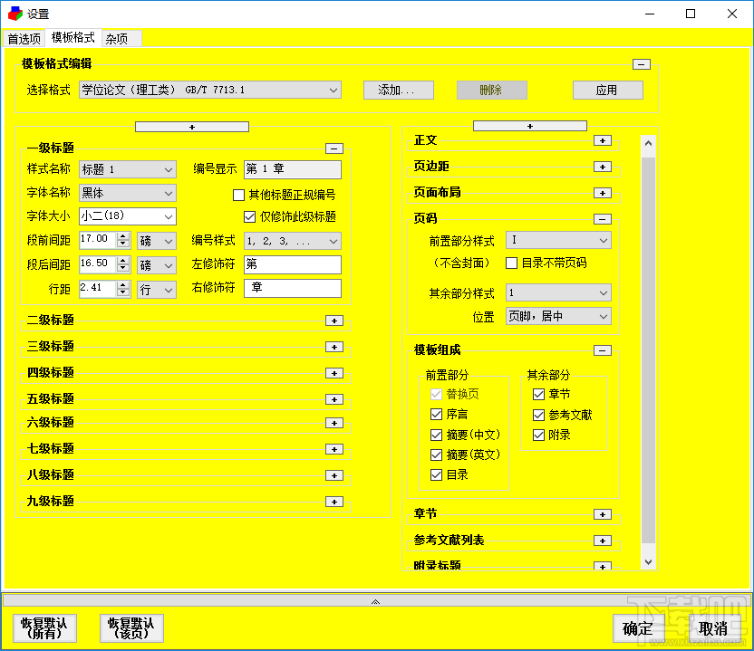 论文格式快速编排助手 可方便地设置页边距、标题和正文样式(字体名称、字体大小、行距等),并一键创建论文模板,论文模板参照标准:GB/T 7713.1 学位论文编写规则、GB/T 7713.2 学术论文编写规则、GB/T 7713.3 科技报告编写规则。