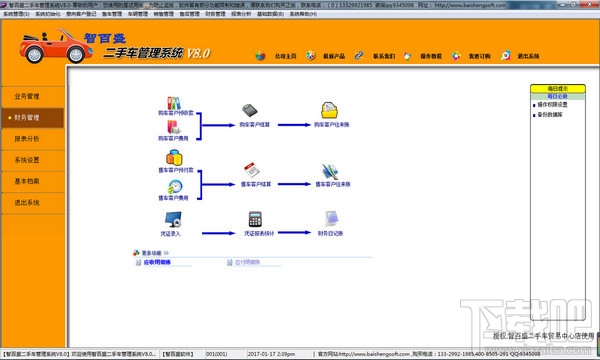 智百盛二手车管理软件是一款专业的二手车交易市场管理软件,其中包含客户关系管理、收车管理,售车管理,销售管理,库存管理系统,财务管理,统计报表系统等子模块,是专门为二手车交易市场定制的二手车买卖管理软件。