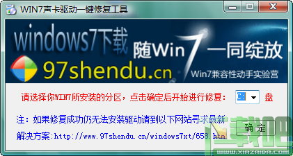 注:此工具只适合在win7系统下使用!一定得先修复win7声卡,再按照提示重新安装声卡即可!