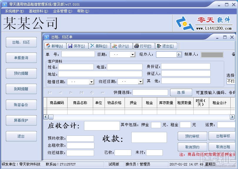 4.4 MB/2020-08-17零天房屋出租管理系统是一款功能齐全优秀专业物超所值的房屋出租管理系统软件,零天房屋出租管理系统是针对房屋出租行业而定制开发的,功能强大,操作简单,界面友好,不需要专业培训即可上手.零天房屋出租管理系统功能特点:1、操作非常简单常用界面只有4个,登记入住、登记收费、登记退房、统一抄表。2、可以根据需要选配打印机、条码枪、及小票打印机。3、所有单据、报表均可以在打印前预览,并且可以导出为Excel文件