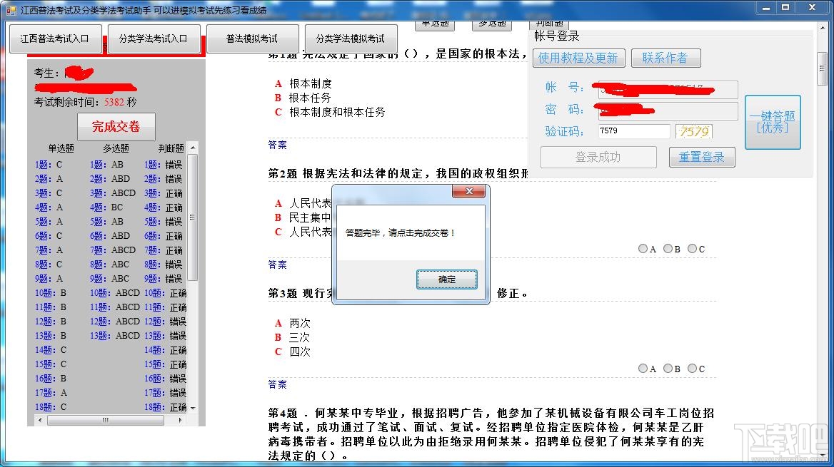 江西分类学法江西普法考试助手用于江西普法网普法考试,能够帮助考生考得优秀,程序中附带江西普法考试分类学法考试的答案,节约考试时间,完成考试任务。本程序可以用于江西普法考试 和分类学法考试 ,和考试系统上面的模拟考试,能够帮助考生快速熟悉考试内容,快速做题,并考得高分,取得优秀。