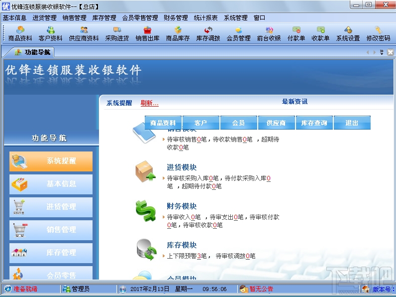 优锋连锁服装收银软件功能简介: