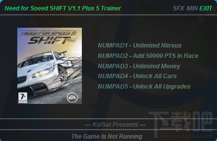 551 KB/2020-08-17极品飞车9修改器使用方法:1、下载附件的NfsMwTrainerV16.rar档案。2、解压缩到任何目录,先执行游戏,再执行本修改器。3、游戏中按下:ALT+1是锁定与输入金钱,你可以自行填入你要的数值,再按一次解除锁定