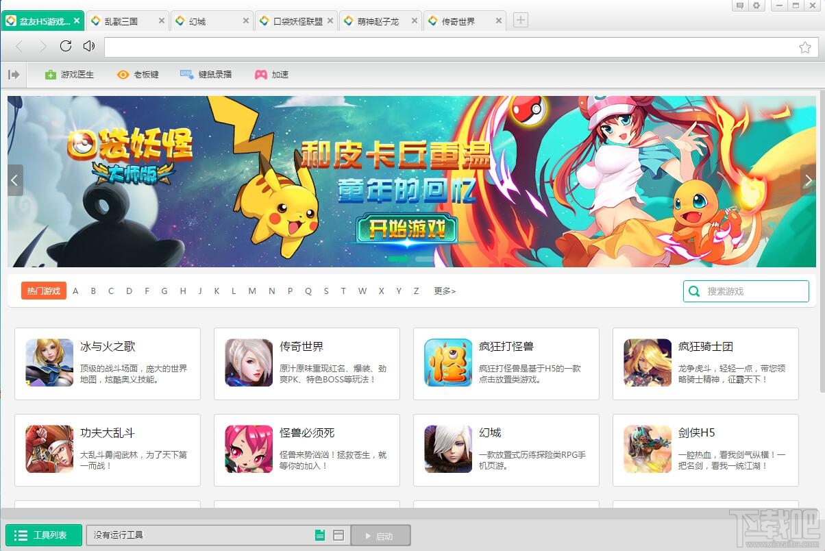 支持怪兽必须死、决战沙城、口袋妖怪大师版、小小地下城、传奇世界H5、少女H计划、疯狂打怪兽等H5游戏辅助,上盆友H5游戏浏览器,每个游戏都有辅助工具!