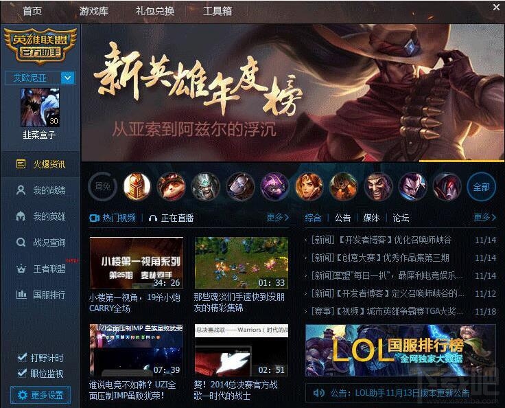 英雄联盟官方助手是腾讯官方推出的一款英雄联盟LOL游戏辅助插件,英雄联盟助手主要提供打野计时、战绩查询、出装推荐等功能。英雄联盟官方助手功能包含:提供打野计时、水晶计时、大招计时、插眼监视等实用性功能,有效提升游戏体验。英雄联盟助手官方提供新最快最全的战绩信息,让你顷刻复盘。通过数值体现玩家使用不同英雄的能力。国服权威数据 精准统计,最及时,最权威,最全面的英雄排名数据,掌握英雄趋势和流行打法。独有英雄联盟玩家关系链,打造个人专属粉丝团,彰显闪亮魅力。内置技能加点方案,助您轻松上手各类英雄。
