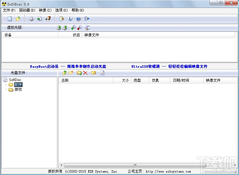 SoftDisc是一款光盘映像文件制作/编辑/管理/虚拟/刻录集成化工具。它以光盘映像文件目录管理、光盘映像制作为核心,集成UltraISO/WinISO编辑器,Daemon-Tools虚拟光驱以及NeroBurning-ROM刻录软件,形成功能强大而又简单易用的光盘工具。