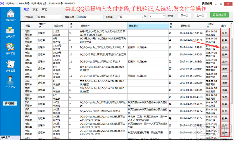 3.接单大厅中,会员可以看到符合自己需求的任务,不符合的任务,将会自动过滤,接单方根本就看不到;