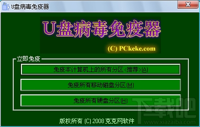 U盘病毒免疫器可以帮助您一键免疫U盘病毒的传播,本软件使用简单,彻底将U盘病毒拒之门外!