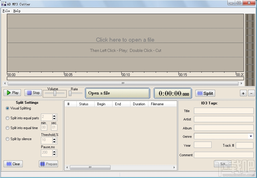 AD MP3 Cutter是一款简单而方便的MP3文件剪切的工具。它有先进的视觉分割功能。一个文件用它的波形图像来表示,放大和输出效果。你可以精确地设定你想要的文件点的切割线,通过一个鼠标点击就可以轻松地改变一个切线的位置。程序可以通过相等的部分、相等的时间或沉默来自动分割文件。该程序具有非常直观和用户友好的界面。输出文件具有原始的输入文件的声音质量。你可以播放所有文件,或者只选择一个选定的部分,改变快速播放的位置,音量水平和播放速率。内置的定时器和信息窗口将帮助你处理这个程序。AD MP3 Cutter允许您创建或编辑ID3标签为每个选定的MP3文件和一个内置的编辑器的一部分。您可以为输出文件设置标题、艺术家名称、专辑和其他属性。