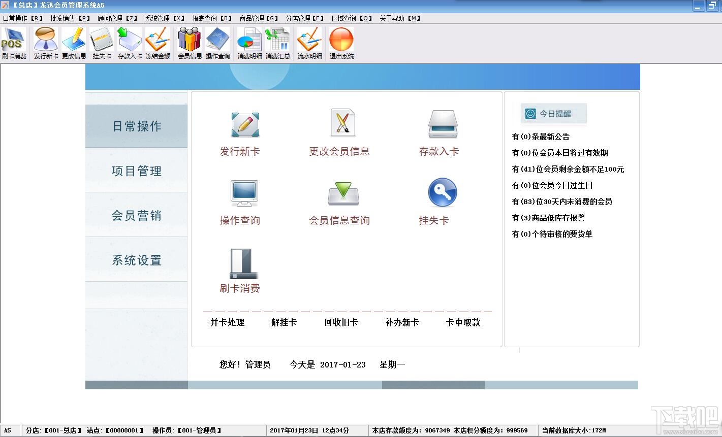 5.8 MB/2020-08-17里诺会员管理系统是一款功能强大的会员管理软件,软件将会员消费,会员基本信息,以及各种查询统计等紧密结合起来,操作简单方便,界面美观大方,能满足如销售,餐饮,美容,服务等行业进行会员制管理,会员卡管理,会员积分管理,会员消费管理的需求,科学的管理方法会给您带来无限的效益,里诺会员管理系统(会员卡管理工具)是您明智的选择。里诺会员管理系统官方版的特点:1、强大的会员管理功能,支持折扣卡、储值卡、升级卡