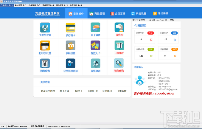 龙迅A6会员管理软件是一款在局域网内运行,适合单店使用的会员管理软件,如药店,超市,度假村,酒店等,只要是单个店面,不要求联网,数据同步的都可以使用,如果商家目前为单店铺,建议您使用会员管理系统A6,会员管理系统具有运行速度快。龙迅会员管理系统是专门针对餐饮、美容美体、超市、会所、消费娱乐等场所开发的一套会员管理软件,从会员办卡到退卡,从会员储值到会员消费,以及商品的管理和销售,我们能为您提供整套的解决方案。