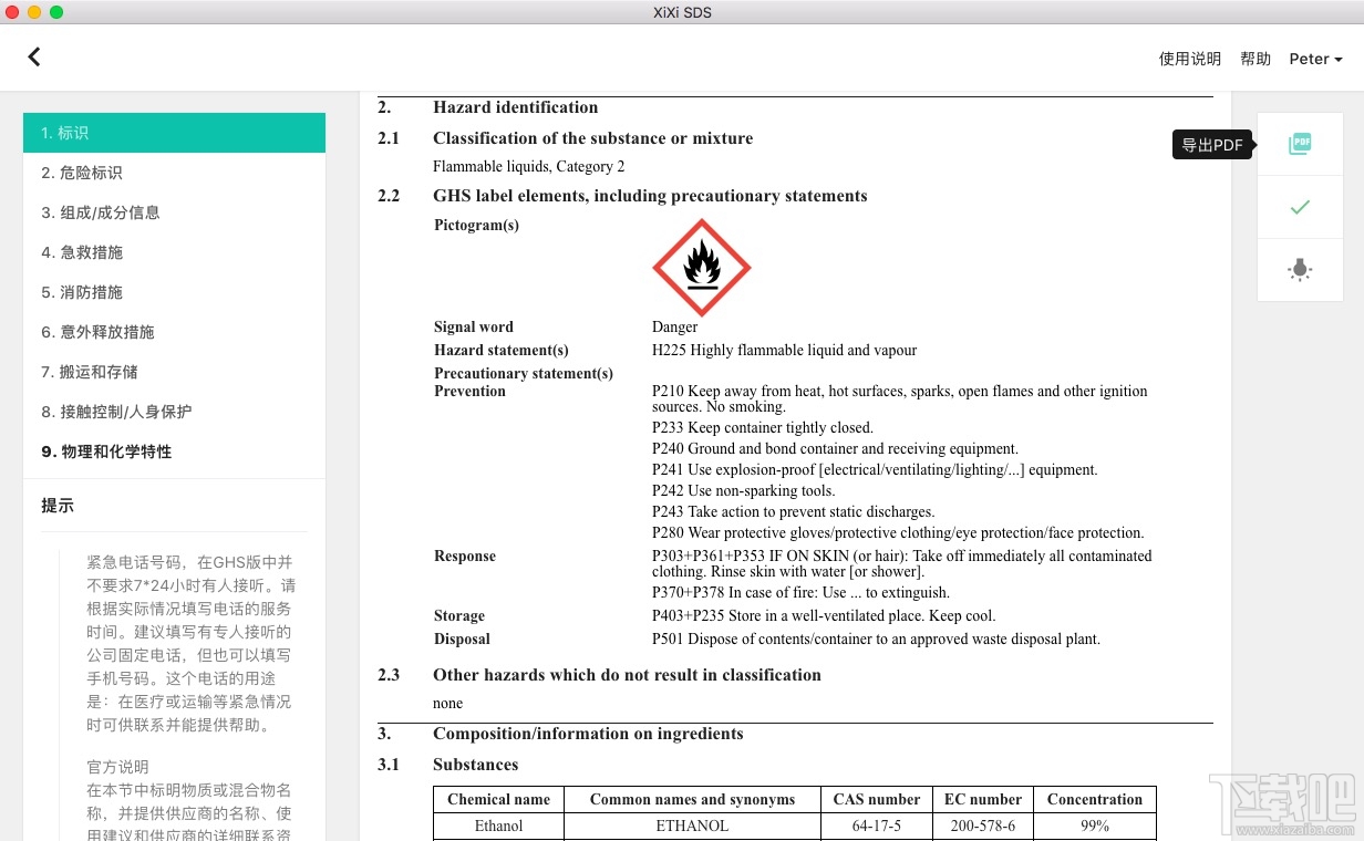 XiXi SDS软件可制作化工行业必备的SDS(化学品安全说明书)。自助制作,一键生成联合国GHS版,美国版,欧盟版。包含格式、术语、数据。本软件收录了欧盟化学品管理局(ECHA)公开的十几万个产品的危害分类(用于SDS第2部分),收录了近千万种产品在美国、欧盟等多个权威公开数据库的信息。只需填写公司名称和产品信息,即可一键得到完整的SDS。可以免费制作联合国GHS新版的SDS。官网也提供Mac版本软件。