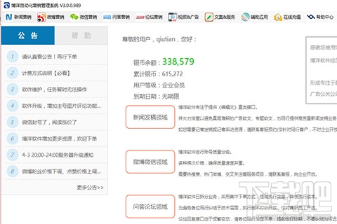 2、微博——微博加关注、转发评论、顶赞,维护、打造、提升微博人气;精准营销,通过绑定主账号,自动进行多维度目标用户采集、并互动操作以吸引关注;微博自动维护,跟踪指定微博账号,博文更新后很快就会自动进行转发、评论、点赞等操作;小V、大V号转发,维护企业微博,很快扩散信息;热门话题榜,快速增加话题粉丝量、话题曝光量、话题讨论量。