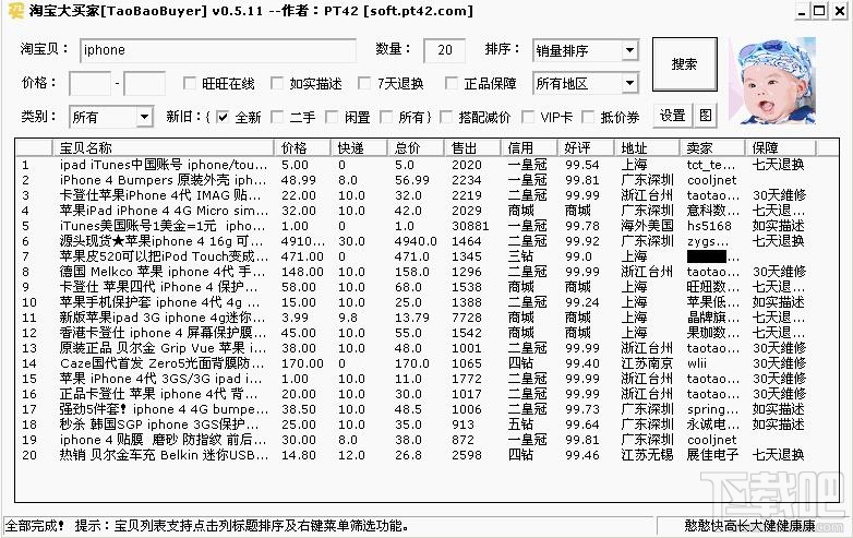 淘宝大买家是一款帮淘宝买家省钱的好工具,它能找到多个商家和宝贝信息,通过比对后让你挑选出性价比较好的商品。淘宝大买家内置多种排序方式,可以快速方便的查找到想要的宝贝。利用“淘宝大买家”,我们可以轻松的获取宝贝的自身费用、快递费用和合计价格,在“总价”上点击即可实现按“总价”正反排序,非常简单方便。