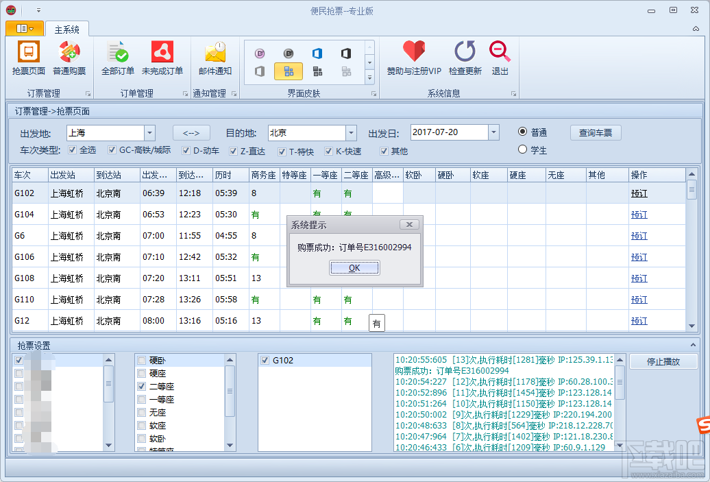 4、定时查询,自动查询有票后自动提交等功能,满足各种订票需求;