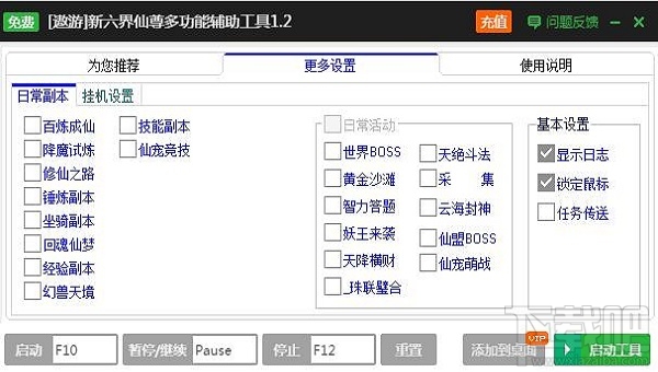 3、一键日常活动:世界BOSS、黄金沙滩、智力答题、妖王来袭、天降横财、珠联璧合、天绝斗法、采集、云海封神、仙盟BOSS、仙宠萌战。