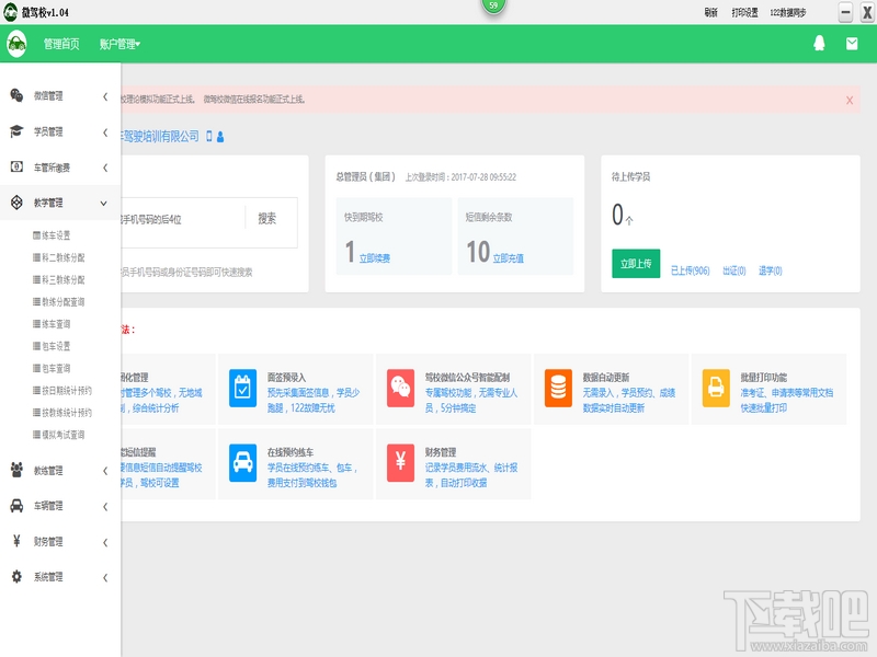 微驾校是为驾校行业打造的智慧驾校综合管理平台,提供驾校行业全新数据管理模式,让传统驾校服务完美对接微信公众号,学员只需进入驾校微信公众号,就可浏览驾校信息、在线报名、模拟考试、预约练车、查询预约、查询考试成绩等。同时还为驾校提供面签预录入、学员管理、财务管理等功能,为驾校提供全新的运营管理模式。