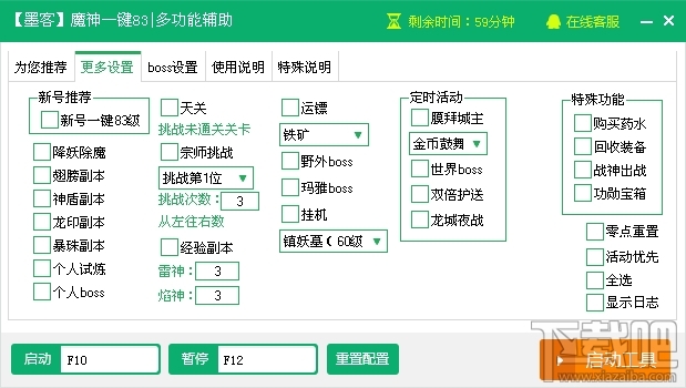 3、一键宗师挑战、经验副本、定时活动、特殊功能;