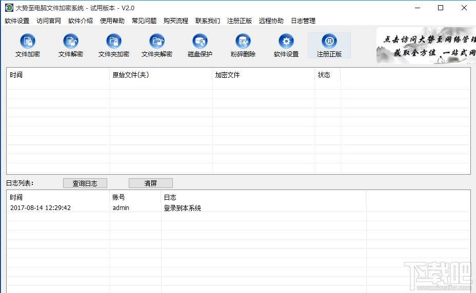 大势至企业文档加密软件是一款专业的电脑文件夹加密软件,可以加密电脑文件或文件夹、加密U盘文件等,并可以实现初中高三种级别的加密强度。同时,系统还独家实现了设置加密文件访问权限的功能,可以只让读取加密文件而禁止复制加密文件、只让修改加密文件而禁止删除加密文件、只让打开加密文件而禁止另存为本地磁盘,从而有效保护了电脑文件安全。