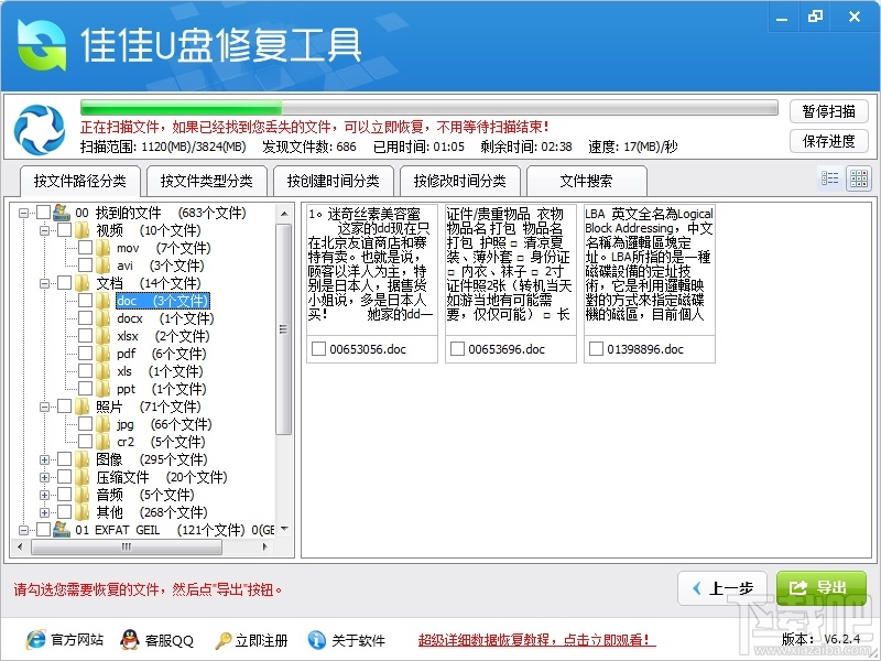 3、扫描出来的文件可以预览内容,在恢复数据前可以判断文件是否能正常恢复。随时可以恢复找到的数据,不用等扫描完成。