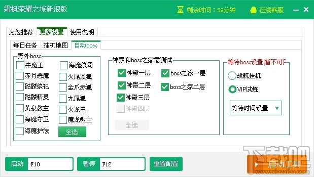 3、一键自动BOSS:野外BOSS、神殿和BOSS之家、战舰挂机、VIP试炼;