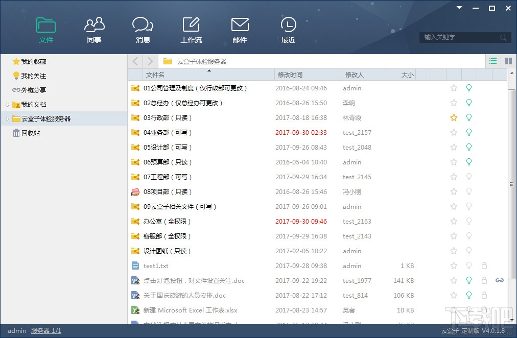 -文件聚合:将企业文档聚合于云端。你可以随时随地查阅、关注文件,查看文件的日志和历史版本。