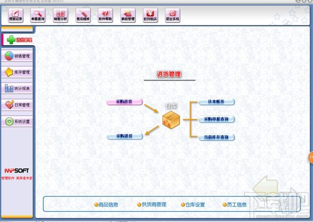 美萍车辆业务管理系统是一款专业的摩托车业务,自行车业务,电动车业务管理软件,其中包含车辆库存管理系统,车辆维修管理等子模块。针对车辆业务经营管理的业务特点,软件集成了进货、销售、库存的查询管理等功能。软件界面设计简洁,美观,普通用户不需培训也能很快很快上手。美萍车辆业务管理软件广泛适用于电动车卖场,摩托车业务店,自行车业务商行等使用,是您企业进行信息化管理的强大工具。