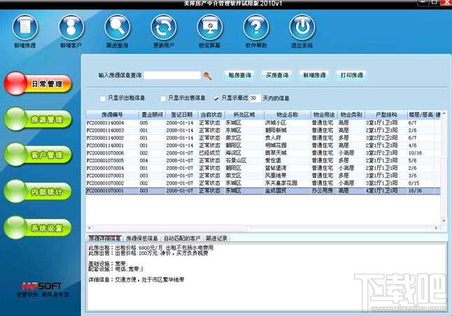 美萍房产中介管理软件是美萍公司推出的一款专业的房地产中介管理系统,它集房源管理、客户管理、业务管理、出租管理,统计分析等强大功能为一身,软件界面简洁优美,操作直观简单,无需专门培训即可正常使用。美萍房产中介管理系统能广泛适用房介经营商、地产代理商等房屋中介业务出租机构使用。美萍房屋中介管理软件是您加强房源管理、客户管理,员工管理,提高工作效率的强大助手。