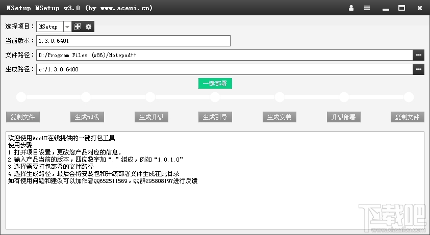 NSetup是AceUI在线提供的基于NSIS脚本实现一款集成美化打包,增量升级,安装统计于一体的解决方案,NSetup逻辑部分基于NSIS脚本实现,修改和二次开发容易,查找资料方便,插件丰富等优势。NSetup操作简单易用,一键式部署。