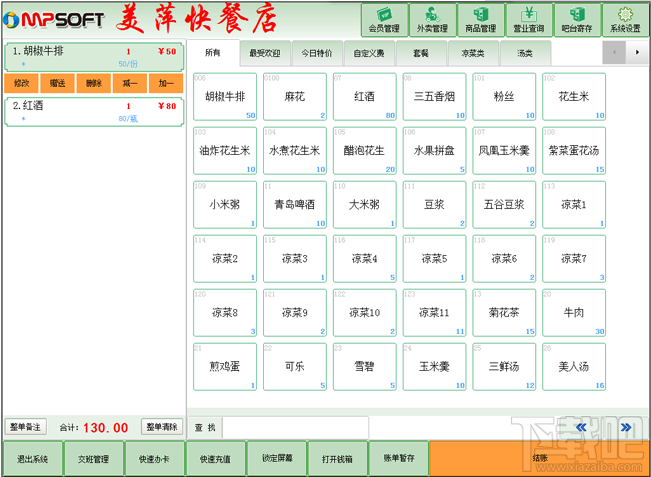 美萍快餐管理系统是一款专业的快餐店管理软件,美萍快餐软件专为餐饮行业中先交钱后消费经营模式而特别定制,解决了餐饮管理软件中对快餐行业管理的难题。软件界面简洁优美,操作直观简单,无需专门培训即可使用。拥有收款机不能企及的如后厨打印,外卖管理,挂单管理,物料管理等强大功能,美萍快餐店管理系统能广泛适用于中式快餐店,西式快餐店,早餐店,休闲饮食店等餐饮娱乐场所。