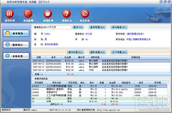 美萍诊所管理软件是一款专业的医疗门诊管理系统。它包含医药进销存管理系统,药品库存管理系统,药店业务收银系统,门诊收费管理系统等子模块。是针对我国众多中小诊所,门诊部而特别设计,量身定做的一款管理软件,软件界面设计简洁,美观,其人性化的软件流程,使普通用户不需培训也能很快能上手操作使用,美萍诊所管理系统涵盖了医疗诊所日常管理的各个方面,是您提升企业形象,增加营业收入,提高顾客满意度的强大信息化工具。