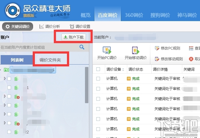 品众精准大师支持百度 360 搜狗 神马多账户跨平台智能调价,可绑定多个账户调词,支持2万关键词调价,探测低到出价达到目标排名,有效降低虚高,提高展现,免费试用,软件开发多年,不断优化升级,让客户用着放心,做竞价更省心