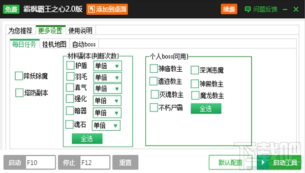 2、一键每日任务:除妖降魔、塔防副本、材料副本、个人BOSS;