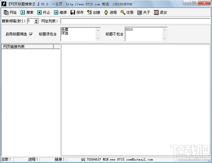 网页标题搜索王是一款批量搜索网址标题指定内容链接地址应用。网页标题搜索王通过对导入大量网址页面采集,有特定字符以及不特定的快速筛选。