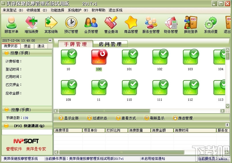 美萍保健按摩管理系统是一款专业的保健按摩管理软件,休闲SPA管理系统,它集前台收银管理系统,员工提成管理系统,营业财务报表系统等强大功能为一身,系统界面简洁优美,操作直观简单,无需专门培训即可正常使用。美萍按摩管理软件是一款充分体现了保健按摩行业的管理实情,为他们量身定做的专业管理软件。美萍休闲保健管理系统是保健按摩,足疗企业,酒店宾馆,洗浴桑拿等场所实现管理信息化理想的保健按摩管理软件。