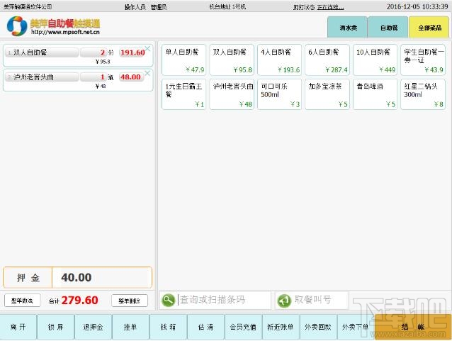 美萍自助餐触摸通是一款专为自助餐店面设计的软件,全触屏操作无需键鼠,界面简洁,操作直观,完全切合行业特点,特别是对自助餐押金的全面优化处理;无需培训,最优点单流程,点单结账最快2秒,最强退换菜,让店面收银真正快起来,后台有完善的商品管理和强大的报表统计,让您的管理真正简单到底!广泛适用于中西式自助餐行业。