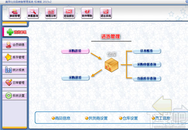 美萍化妆品业务管理系统是一款结合国内广大化妆品流通企业的经营管理特点开发的化妆品企业专用管理软件。其中包含化妆品商品业务管理系统 ,化妆品库存管理系统(化妆品仓库管理系统),化妆品安全,化妆品收银系统,WEB远程查询等子模块。 软件界面设计简洁,美观,其人性化的软件流程,使普通用户不需培训也能很快掌握软件操作使用方法,上手极易。强大报表与集成查询功能是本软件的比较大特色,所有功能在用户需要的使用地方自然体现,不用打开多个窗口重复查询。美萍化妆品管理软件广泛适用于化妆品超市、化妆品专卖店、专柜等等需要对化妆品进销存管理, 库存管理,财务管理,收银管理,员工管理的场合,是现代商业管理模式与电脑信息技术的完美结合。