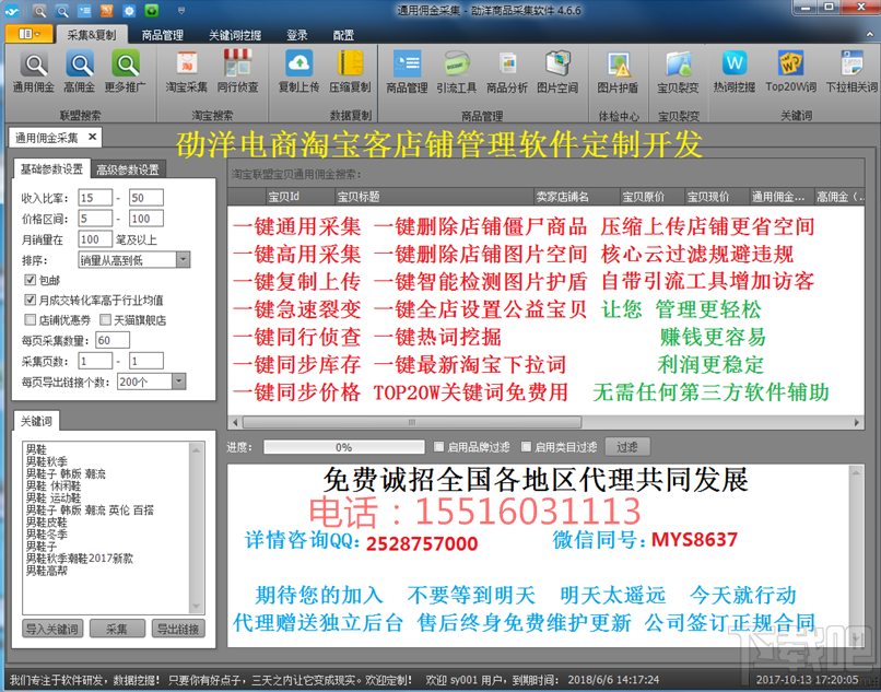 劭洋店铺助手可以一键采集一键复制上传,以及同行侦查功能,我们的软件是一个整体的,不用在购买其他第三方软件。并且可以一键同步上家库存和价格,自带关键词挖掘功能,20万淘宝热搜词,淘宝下拉框的热搜流量精准词, 标题裂变、爆款裂变、无限橱窗设置, 全店一键设置公益宝贝,以及定时上下架和3c检测,商品护盾监测过滤等功能,价格优惠,永久有效的。
