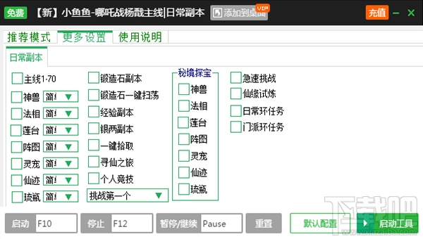 2、一键日常副本:神兽、法相、莲台、阵图、灵宠、仙迹、琉瓶、锻造石副本、经验副本、银两副本、一键拾取、寻仙之旅、个人竞技;