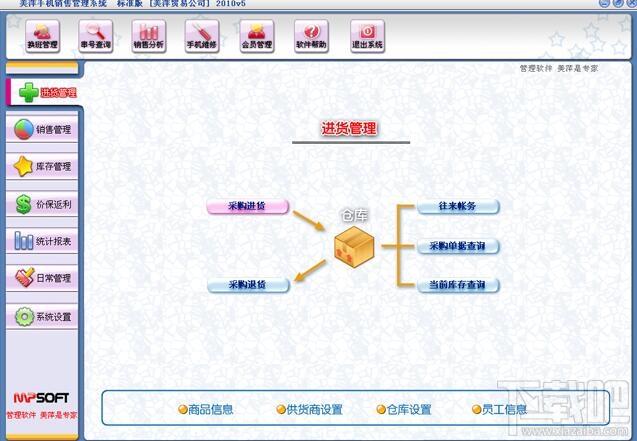 美萍手机业务管理系统是一款专业的手机业务管理软件,其中包含手机进销存系统,手机库存管理系统(手机仓库管理系统),财务和报表系统等子模块。其中的手机串号管理功能更是融贯了功能的复杂性和使用的方便性。美萍手机管理软件广泛适用于手机业务店,手机卖场等用于手机业务管理,手机库存管理,手机店内部的客户管理,员工管理等场合,是您企业进行信息化管理的强大工具。