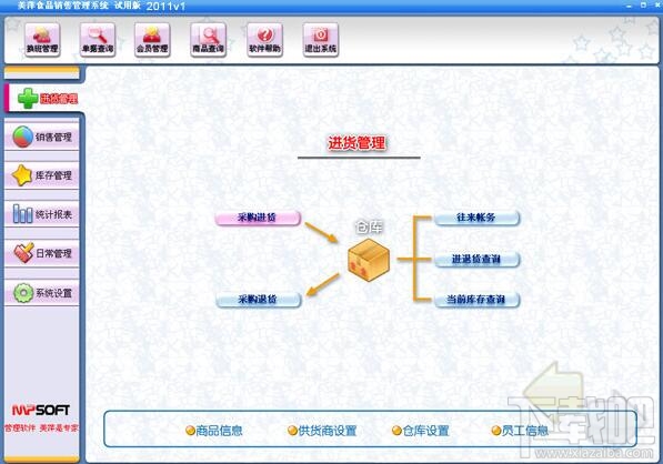 美萍食品业务管理系统是一款根据国家对食品安全监管的相关要求,结合国内广大食品流通企业的经营管理特点专门开发的食品管理软件。对食品行业重点关注的保质期,批次等功能进行了特别强化。 美萍食品业务软件界面设计简洁,美观,软件流程人性化的。其中包含食品业务系统,食品库存管理系统,食品安全,食品收银系统,WEB远程查询等子模块,普通用户不需培训也能很快掌握软件操作使用方法,上手极易。强大报表与集成查询功能是本软件的比较大特色,美萍食品管理软件广泛适用于超市,食品店,蛋糕店,烘焙行业等用于食品进销存管理, 库存管理,财务管理,收银管理,员工管理等场合,是您提升经营管理效率的强大工具。