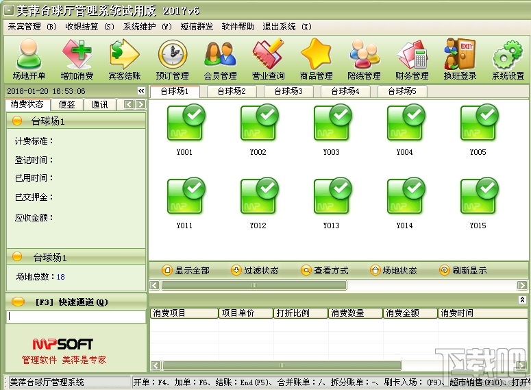 美萍台球厅管理软件是一款专业的台球厅管理系统,它集前台收银收费 管理,一卡通功能,桌台自动计费管理,会员管理,陪练管理等强大功能为一身,系统界面简洁优美,操作直观简单,无需专门培训即可操作使用。是台球厅信息化管理的理想软件。