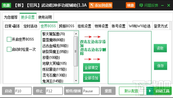 2、一键日常副本:悬赏任务、伏魔任务、帮会任务、跨服任务、巅峰任务;