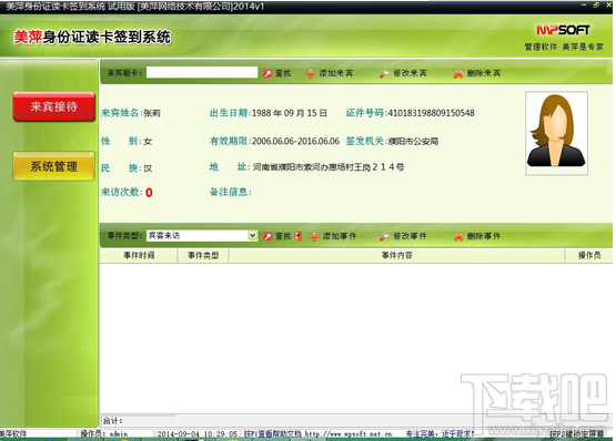 美萍身份证读卡签到系统是一款功能专业、操作简单的身份证读卡签到管理软件。软件功能包括来宾刷卡登记,来访事件记录,来宾信息查询、来访信息查询统计等模块。使用场景如员工签到、客户来访、礼品的发放、临时会议来访登记等。软件界面非常简单、美观,功能完善。人性化的软件流程,普通用户无需培训也能立即上手使用,降低使用成本,美萍身份证读卡签到系统是最适合客户来访登记信息化管理的工具。