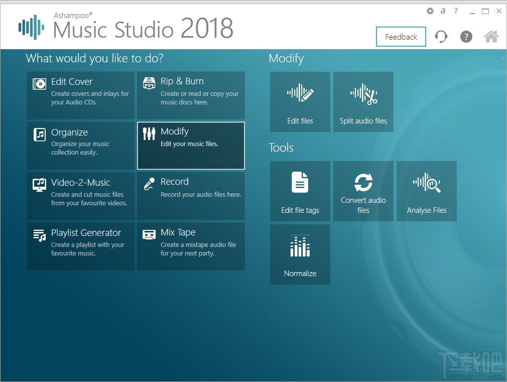 Ashampoo Music Studio 2018 是一款久经考验的万能音频处理软件,可以编辑和刻录音频。它能快速抓取音频光盘,并拥有全面的在线数据库可以自动补全缺失的轨道信息。音频文件可以被刻录到光盘或是转换为其它格式。内置音频编辑器,用户可以修改或删除一个片段,可以分割音频成独立的部分。管理歌曲库是程序的另一项特长。可以修改元数据,更改音量,根据自定义命名模板重命名文件。并且利用淡入淡出效果混合歌曲,提取视频中的音频轨道来作为铃声等都是小菜一碟。它内置封面编辑器,包含多种模板,从简单的设计到复杂的布局,轻松设计封面和光盘面。主菜单以及程序结构得到了全新的设计,使用更加快捷。现在可以通过在编辑器中拖动来精确定位各个片段,自动吸附到位置方便重新排列。而且还增加了对 APE 的支持。